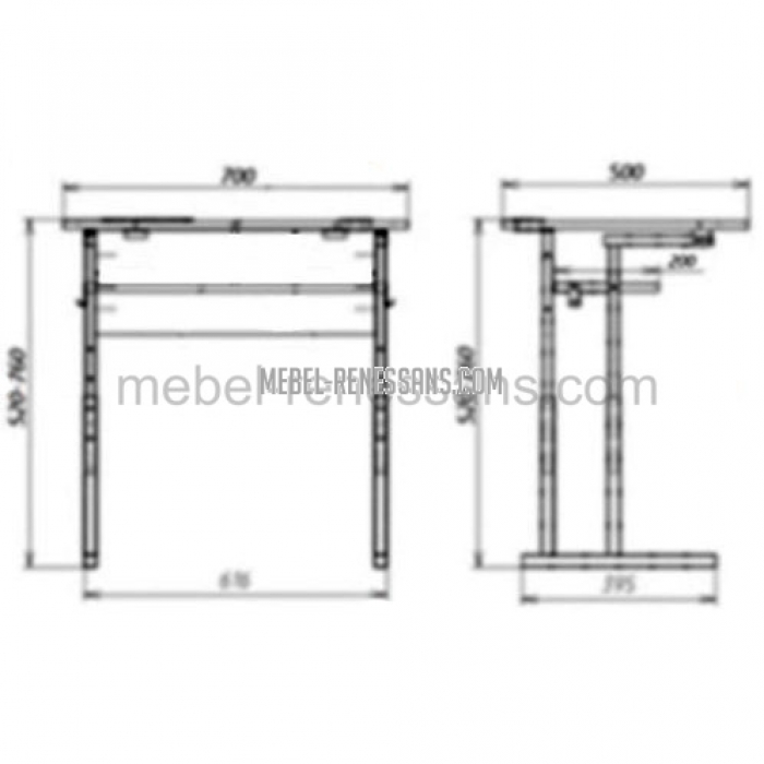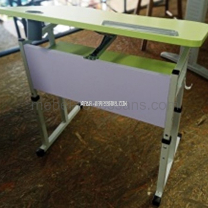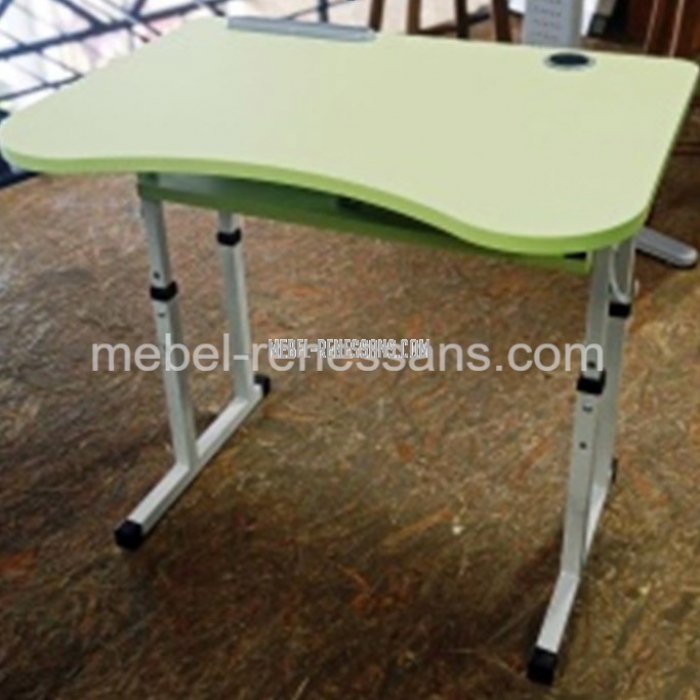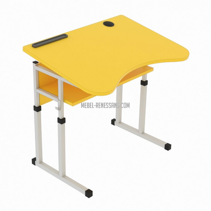 Складається з фігурної стільниці, царги, полиці та регульованої металевої опори. Регулюється по висоті згідно ростових груп. Має зручний механізм трансформації стільниці для регулювання кута нахилу.