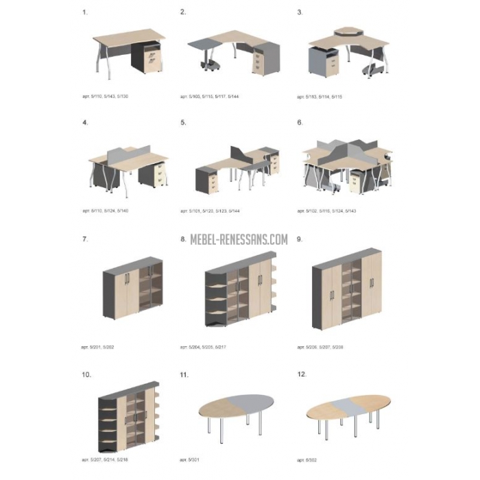 ⦁ Серийный цвет: ДСП "Береза Майнау" в сочетании с ДСП "Платина".