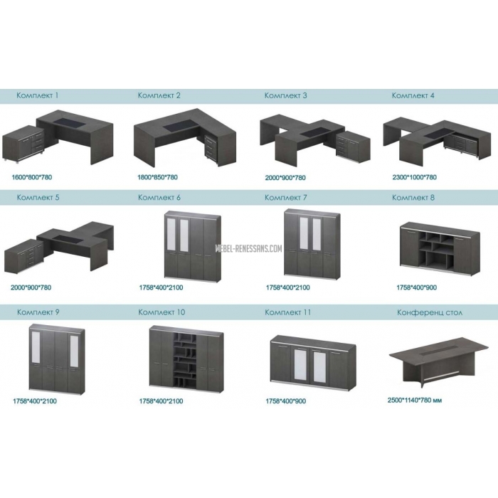 ⦁ Толщина столешниц и стоевых столов, приставных столов, брифинг приставок, конференц столов – МДФ 57 мм;