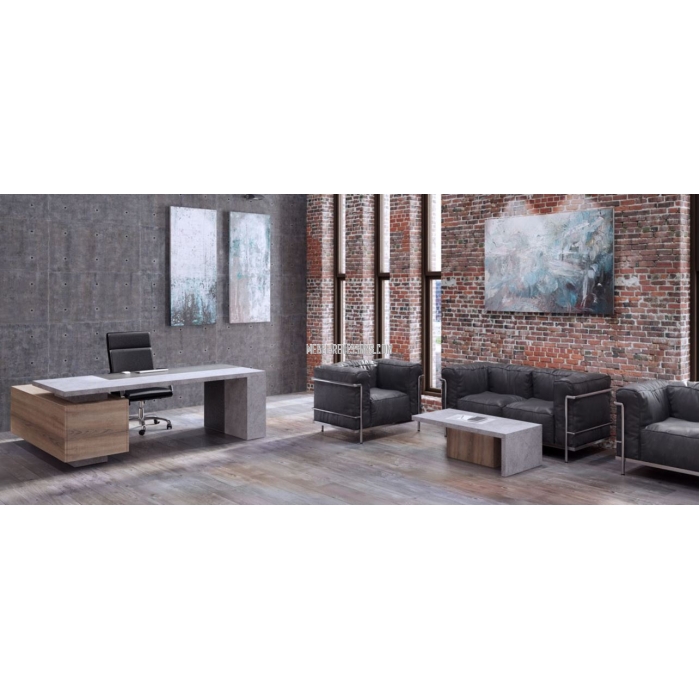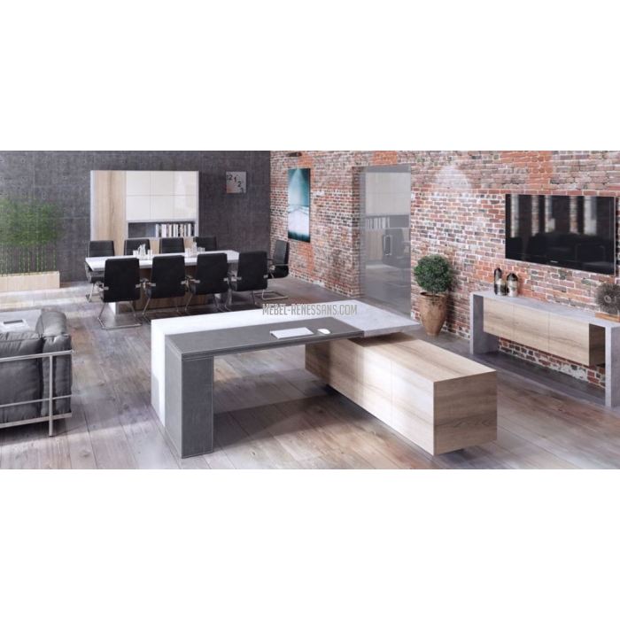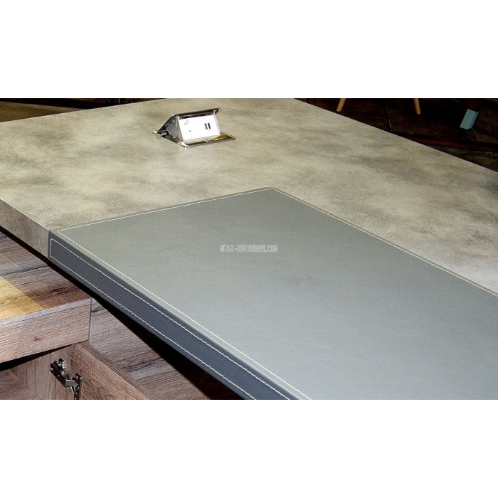 ⦁ Стол руководителя – облицовка пластиком HPL, толщина столешницы и стоевой - 52мм, вкладка в столе руководителя (переходящая в стоевую) – кожа с декоративной строчкой.