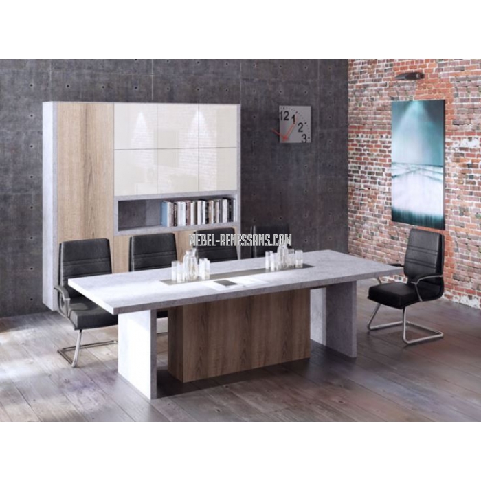 ⦁ Конференц-столы: Столешница - облицована HPL, толщина столешницы - 52мм. В столешнице используются вставки из кожи.