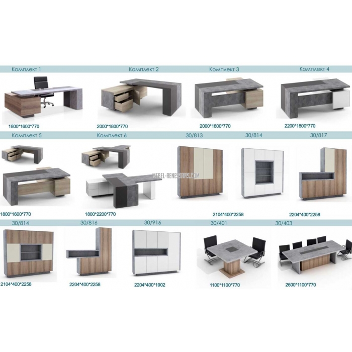 ⦁ Тумбы для стола: материал всех внешних деталей - МДФ 19мм. Комбинированный тип облицовки HPL и ПВХ. Направляющие - тандем с Tip On (Blum),