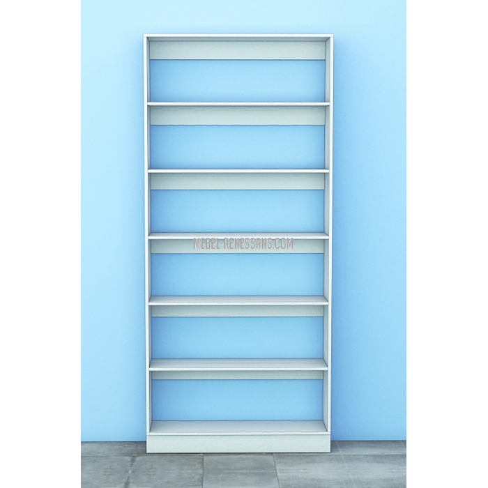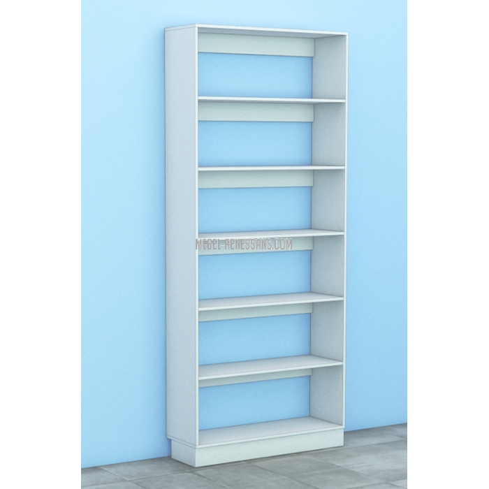 Стелаж складається з прямих відкритих поличок. Колір ламінованого ДСП: Білий Текстурний (на вибір замовника).
