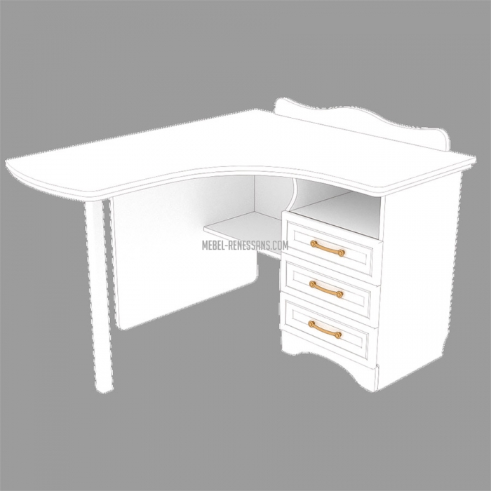 Стіл виготовлено з ЛДСП 18 мм, кришка столу має товщину 36 мм. З правої/лівої сторони столу знаходиться тумба з трьома шухлядами на телескопічних направляючих та нішею між кришкою столу й шухлядами.